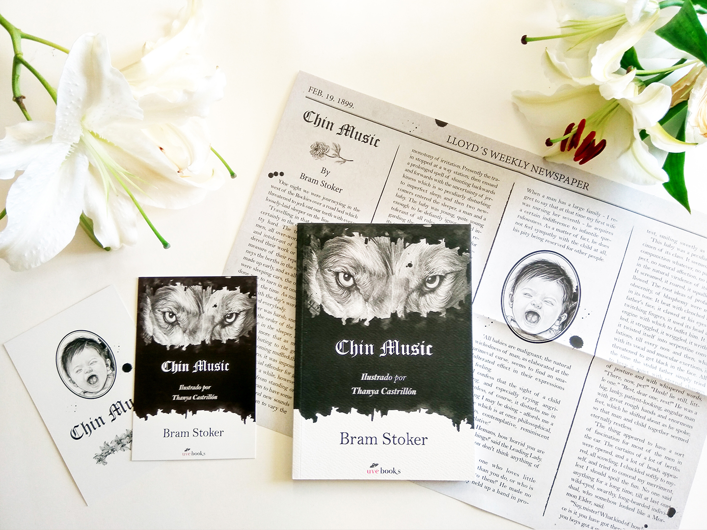 Desde la editorial Uve Books, presentamos esta edición de arte, con una nueva traducción a cargo de Marino Costa e ilustrada por Thanya Castrillón, que incluye un tarjetón ilustrado y una recreación del periódico Lloyd’s Weekly Newspaper, donde fue publicado por primera vez el relato Chin Music el 19 de febrero de 1899, en su versión original.